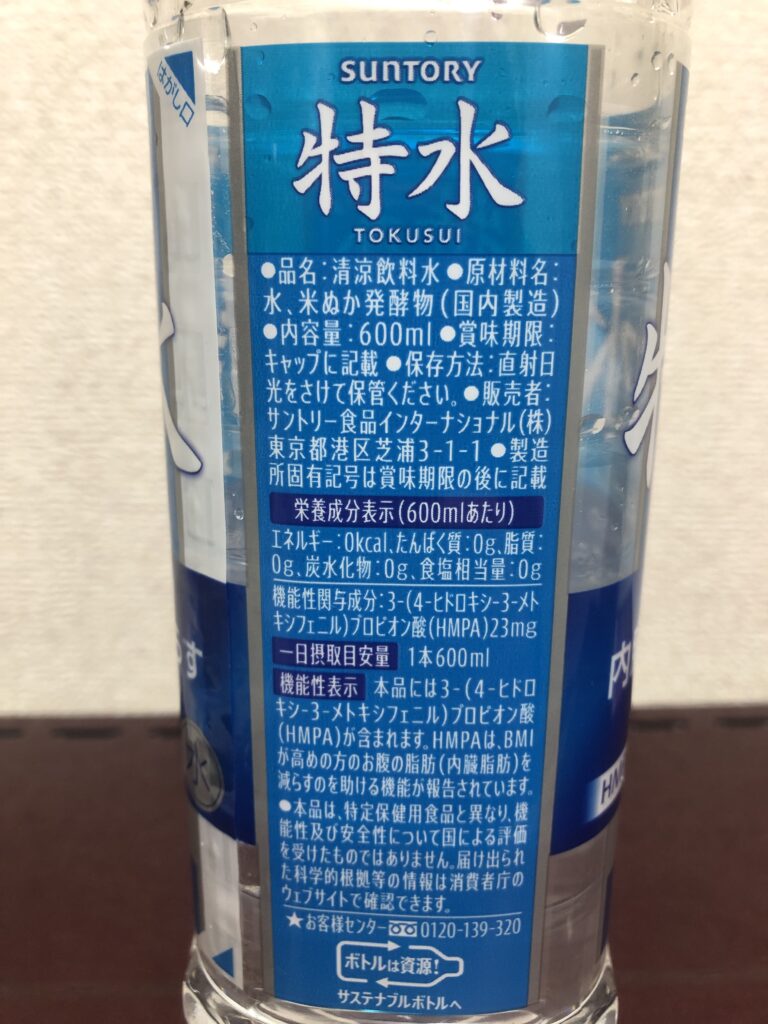 - 特水サントリー(ウォーター):今回主役の無味無臭ウォーター。